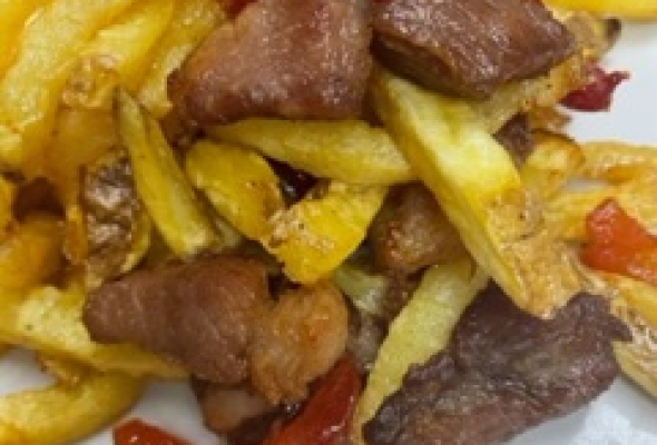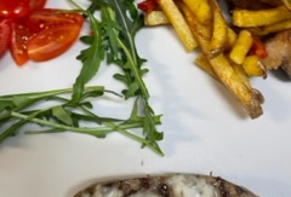 Salsiccia con provola e carne di maiale patatine e peperoni all aceto