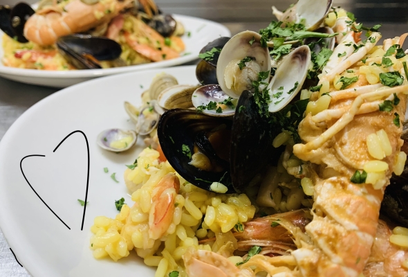 Paella tipico piatto spagnolo con carne pesce e verdure Disponibile il giovedì o su prenotazione almeno 5 porzioni